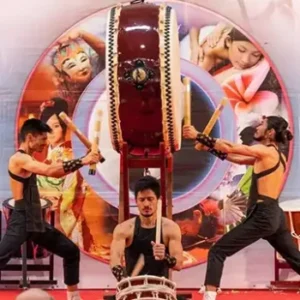 Il ”Taiko” è la percussione tradizionale della cultura Giapponese. Le antiche origini del taiko non sono chiare e rimangono avvolte in varie ipotizzazioni. Una scultura Haniwa (antica argilla giapponese) raffigurante un percussionista con un tamburo risalente ai secoli 600-700 d.c. dimostra la sua effettiva esistenza sin da quel periodo. La somiglianza con il tamburo Cinese e quello Coreano è all’apparenza molto alta, e non si può escludere una forte influenza da parte di queste due culture a loro volta influenzate enormemente da tutta l’India soprattutto attraverso il Buddismo.